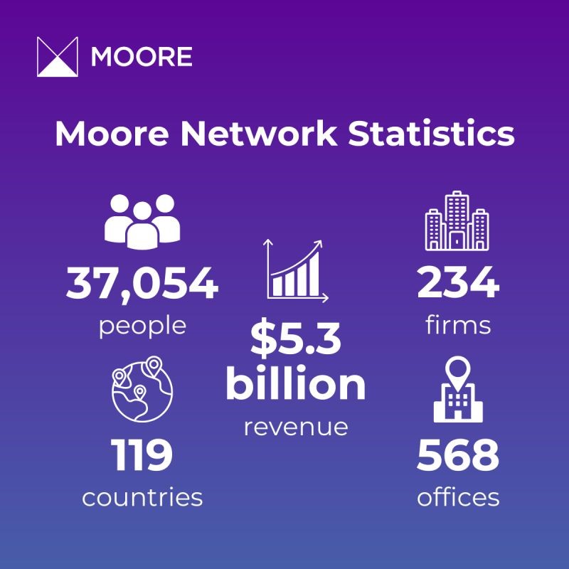 Бүгінде Moore – 119 елде клиенттерге әлемдік деңгейдегі сараптамалық қызметтер көрсететін 37 000-нан астам кәсіби мамандарды біріктіретін жаһандық қауымдастық.
